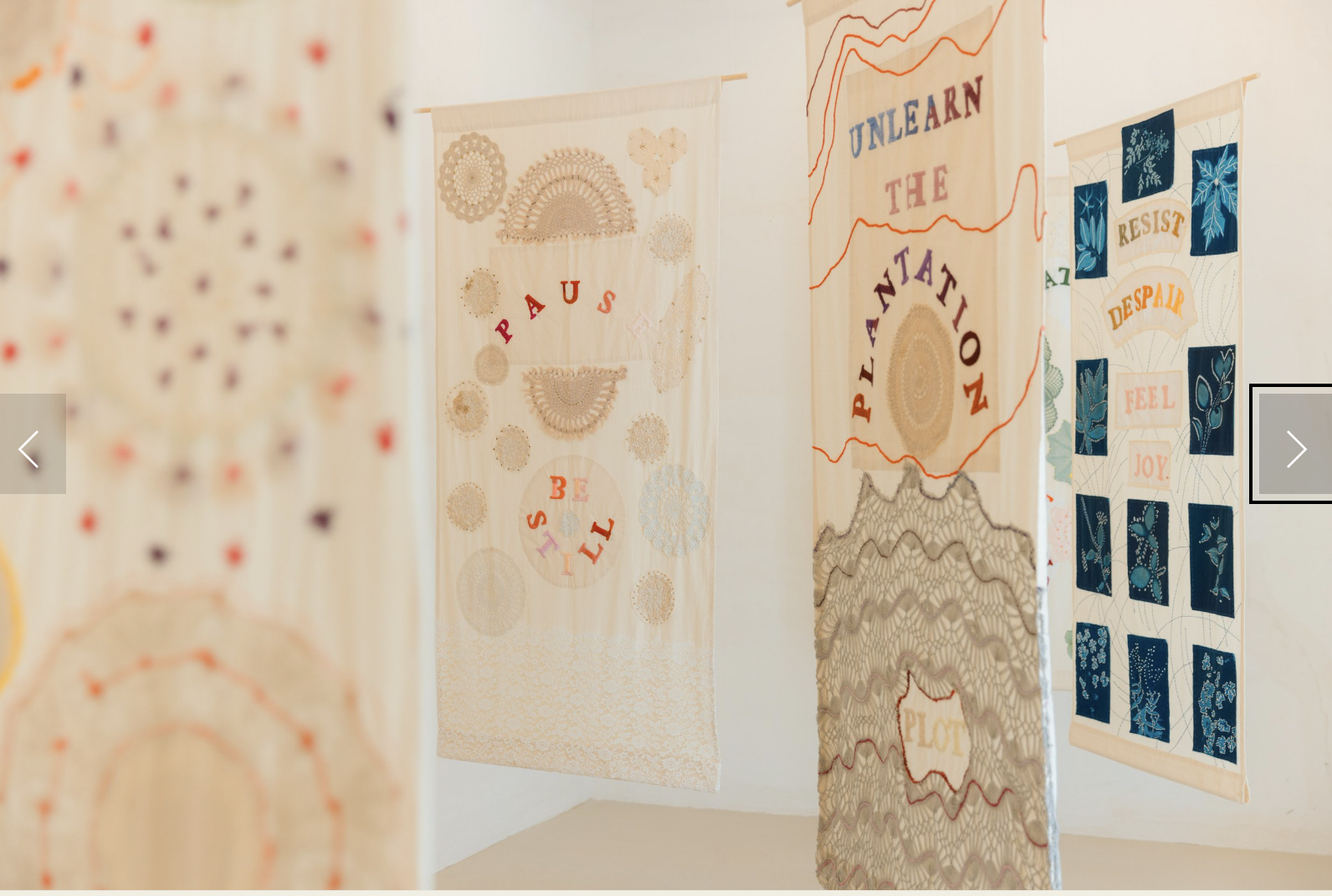 My work often begins with words: words that I read, words exchanged in conversations with others to help me unpack ideas, and words that I write. Writing and reading against the grain of history is one way to locate the fissures, open them up, and allow other storylines to manifest, creating portals into our shared pasts where we may better understand our nuanced history. My art practice is an ongoing process of unraveling my schooling and through it, unlearning the plantation that sits within me.